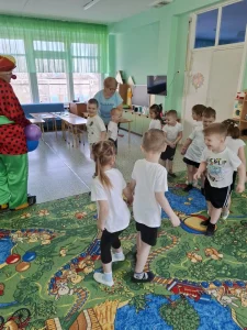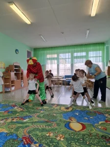С детьми были проведены веселые конкуры, игры и викторины. Дети веселились и очень звонко смеялись. Веселый персонаж, который пришел к детям непривычно гарусным в конце развлечения стал: бодрым, радостным, озорным и все это благодаря усилиям ребят.