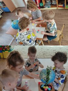 Целью тематического занятия было продолжать воспитывать у детей любовь к окружающему миру, желание заботиться о природе. С детьми проведена беседа о том, что планета Земля наш большой Дом. В доме нужно поддерживать порядок, чистоту, от грязи и мусора Земля может заболеть и плохо будет зверям, птицам и человеку и всему живому на земле. Главным наглядным пособием стал глобус-модель Земли, который дети украсили к празднику. В ходе занятия дошкольники освоили основные правила поведения в природе, как вести себя в лесу, у реки.