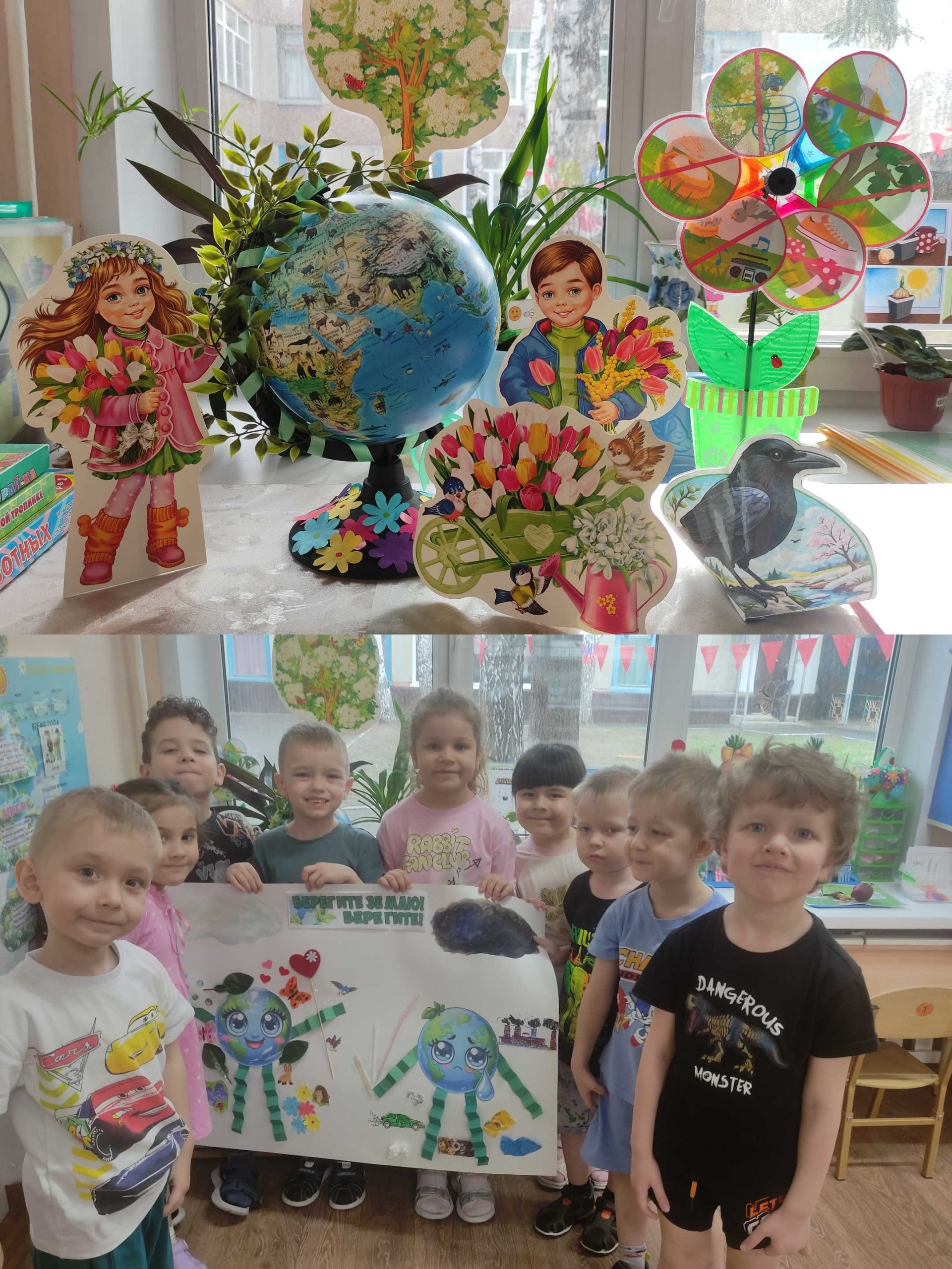 В группе «Колокольчики» прошёл тематический день, посвященный Дню Земли – праздник чистой воды, земли и воздуха. В течение дня были проведены различные мероприятия.